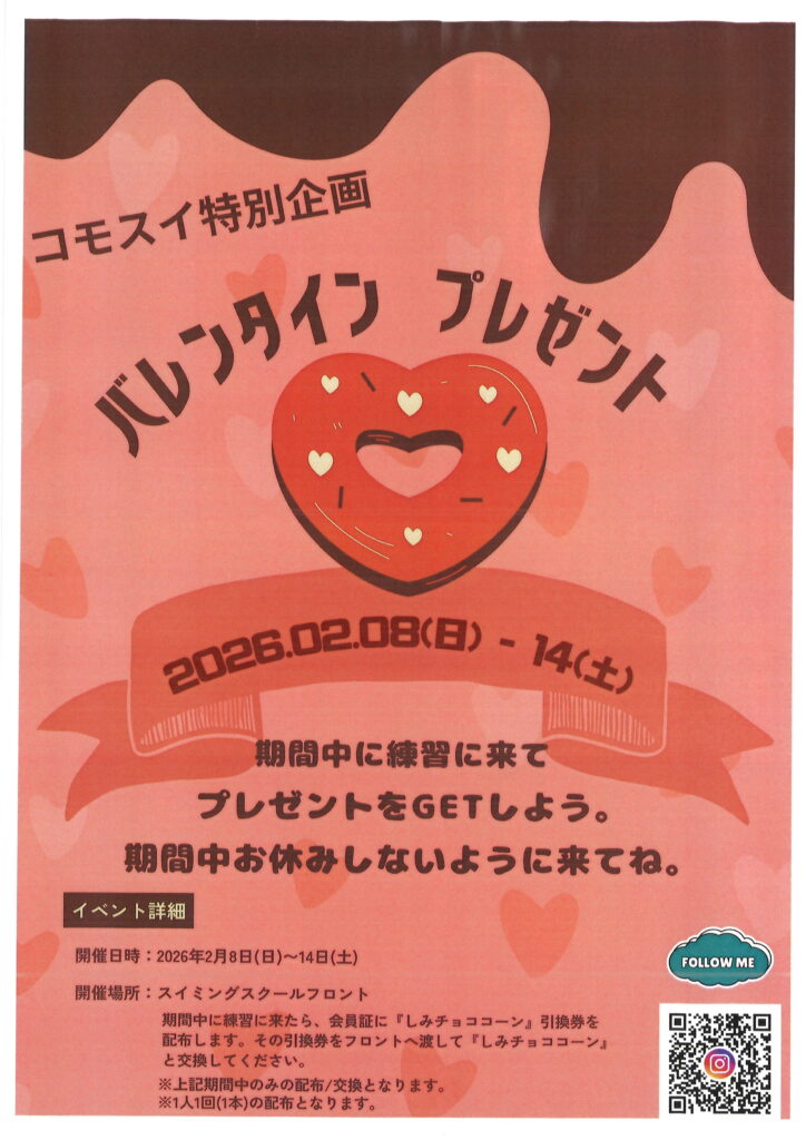 【ジュニアスイミング/キッズスタジオ】バレンタイン特別企画のお知らせ