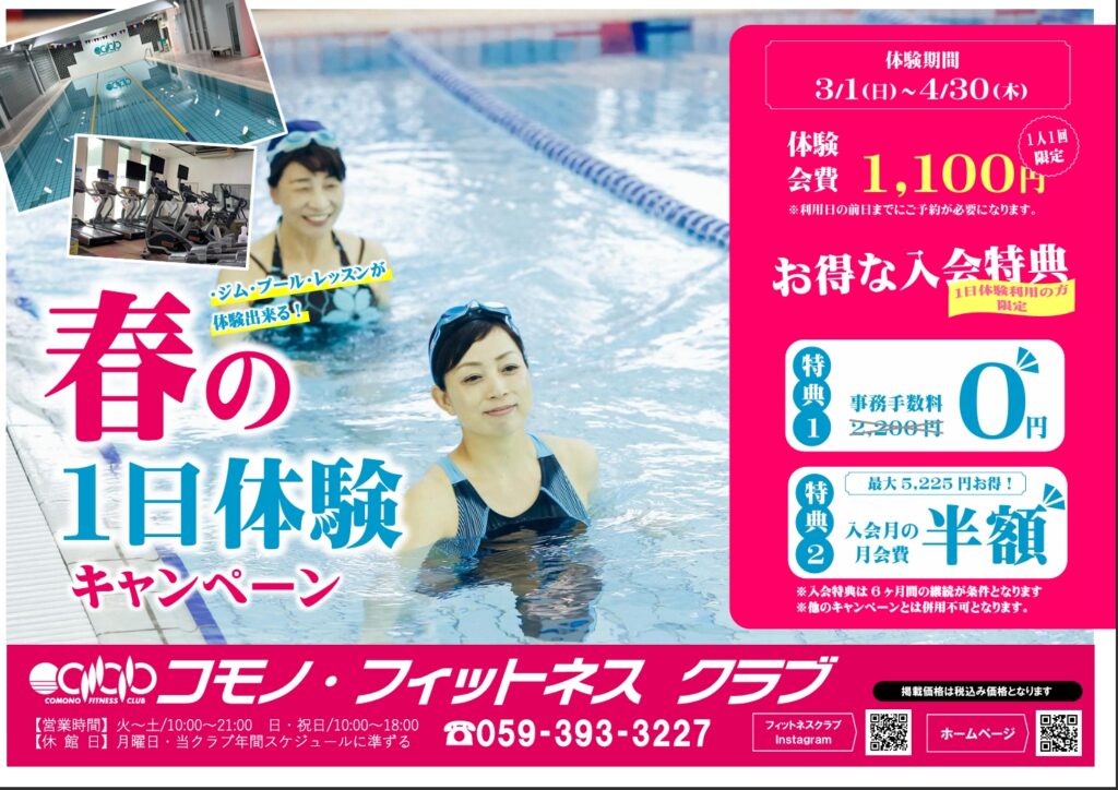 2026年3月1日(日)~2026年4月30日(木)にフィットネスが1日体験できます!
